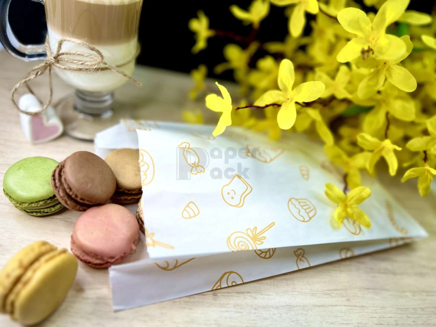 Cukrászati csomagolópapírunkat főképp cukrászdák számára ajánljuk édességek, illetve sós sütemények csomagolására, és ebben való elszállítására. A cukrászati papírzacskó érintkezhet egyenesen élelmiszerrel, rendelkezik minden tanúsítvánnyal, amit kérés esetén bármikor kibocsájtunk. Jelenleg három különböző színben és két méretben elérhető ez a típusú cukrászati csomagolóanyag. Egyedi csomagolóanyagot is készítünk igény szerint, erről az ehhez tartozó fül alatt tájékozódhat.