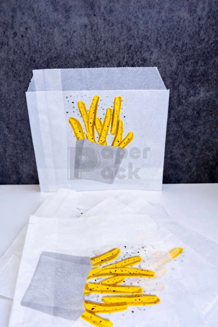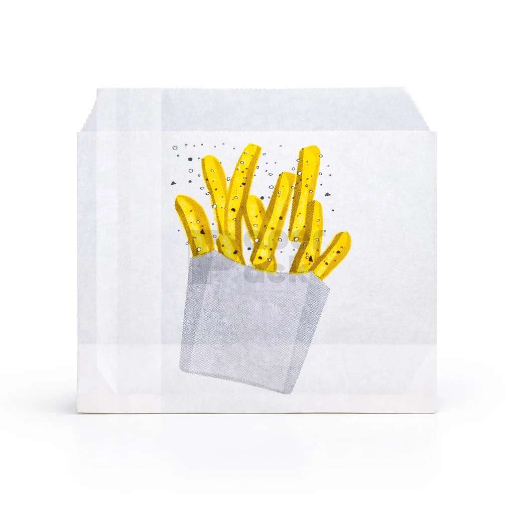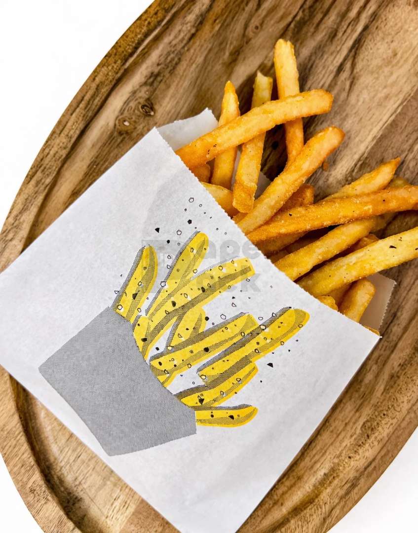 Gyorséttermek számára, hasábburgonya csomagolására készült csomagolóeszköz. A sültkrumpli tartó anyaga 35gr/m2 pergamenpótló (zsírálló) papír, mely meggátolja az étel letapadását a papírban, és megőrzi annak hőmérsékletét. Termékünk biztosítja, hogy adott menühöz mindig ugyan azt a mennyiségű hasábburgonyát szervírozza a személyzet. A burgonyás tasak érintkezhet egyenesen élelmiszerrel, rendelkezik minden tanúsítvánnyal, amit kérés esetén bármikor kibocsájtunk. Egyedi grafikával ellátott burgonyás tasak készítésére is lehetőség van, erről az egyedi csomagolóanyag fülön tud tájékozódni.